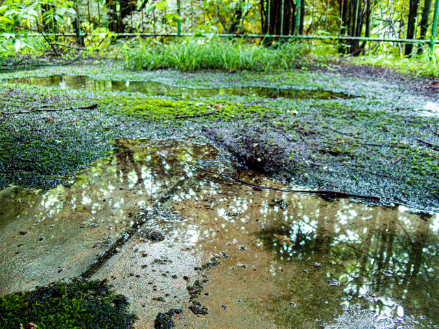 【謎すぎる】なんだこれ?→グラウンドで真っ赤な水たまり見つけたので指を突っ込んでみた